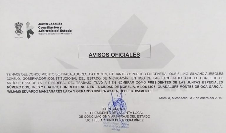 Aviso de la Junta Local de Conciliación y Arbitraje del Estado