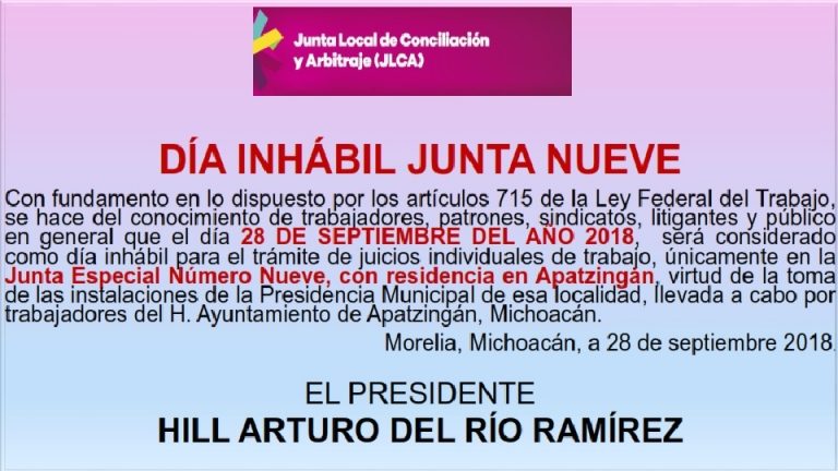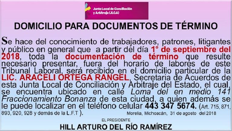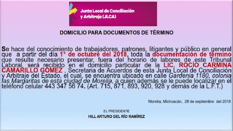 Se hace del conocimiento del aviso oficial por la Junta Local de Conciliación y Arbitraje.
